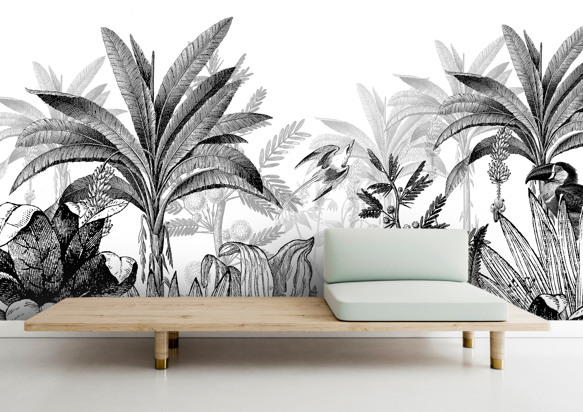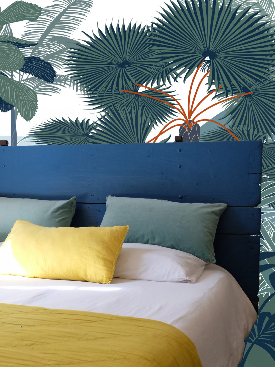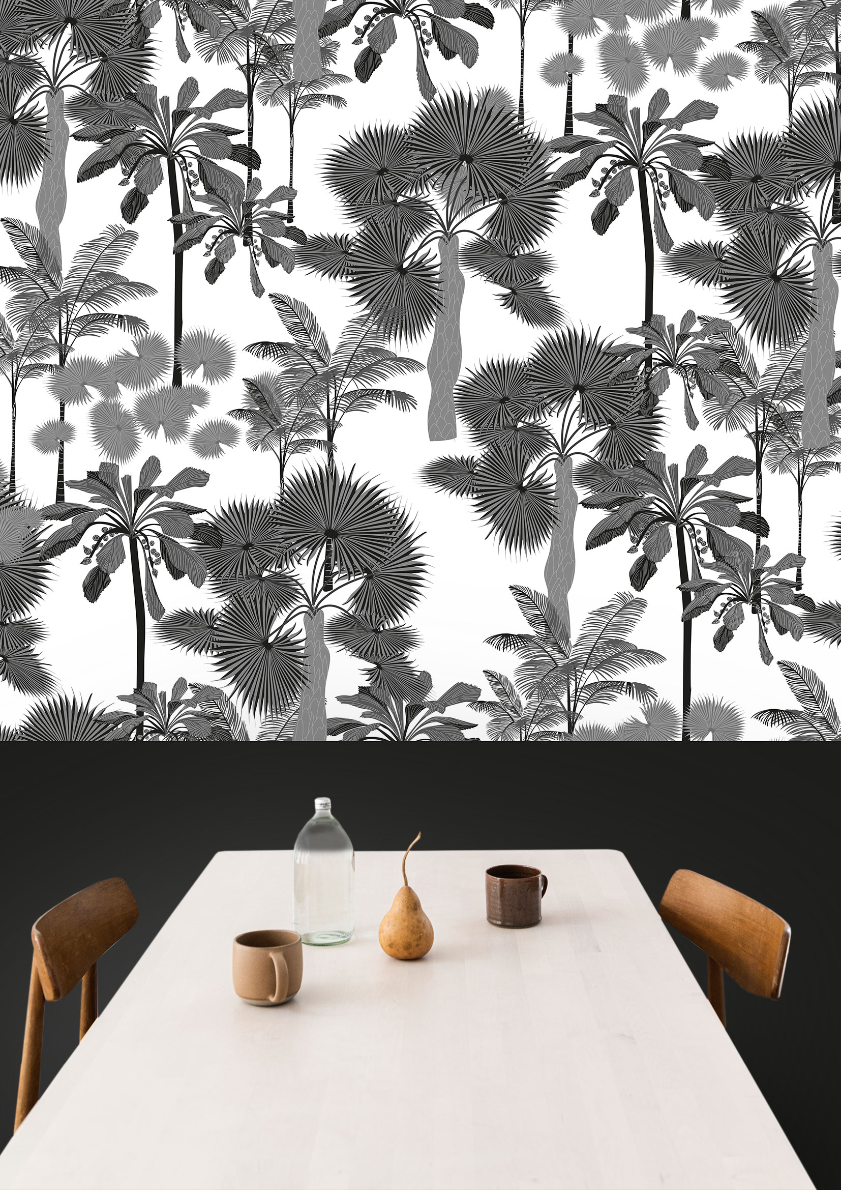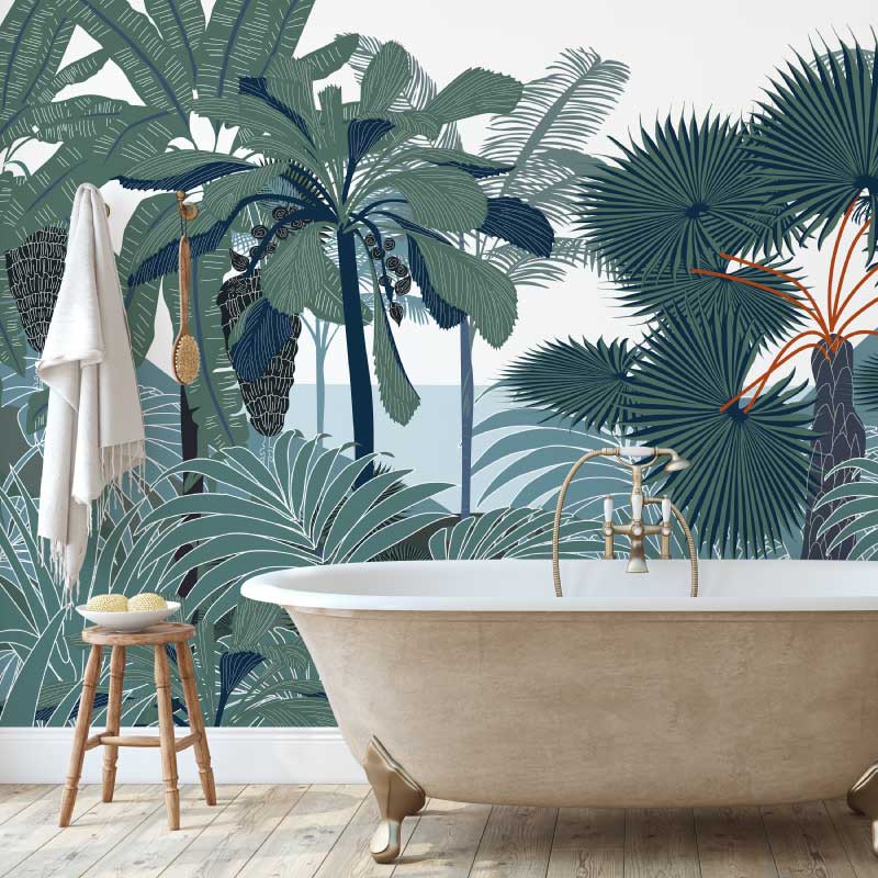 Notre papier peint Palmiers N°1 aux classiques revisité. Disponible en plusieurs tailles et aux couleurs de votre choix.