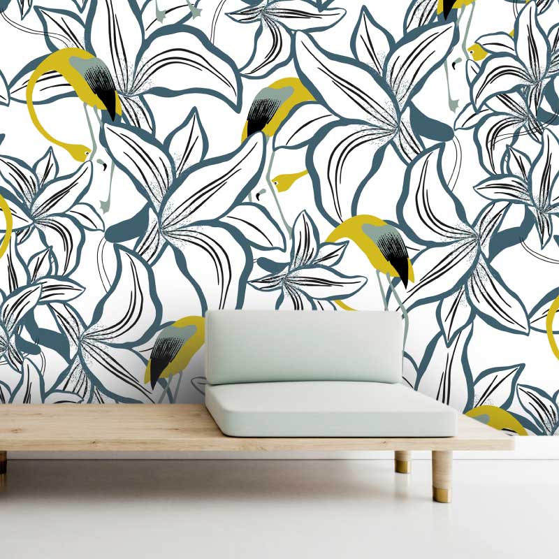 Nos papiers peints existent en plusieurs coloris. Ici le papier peint Oiseaux N°1 en version douce et légère pour s'adapter au plus grand nombre d'intérieur.