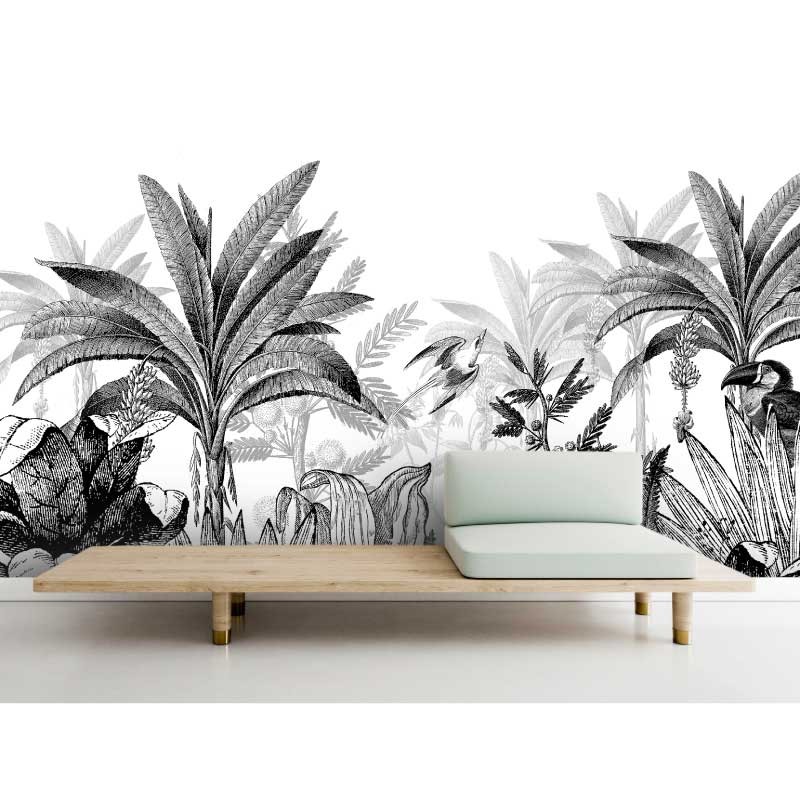 Un panoramique noir et blanc au style classiques avec des illustrations de style gravure à l'ancienne. Ce panoramique apporte de la profondeur à tous les espaces.